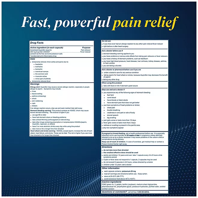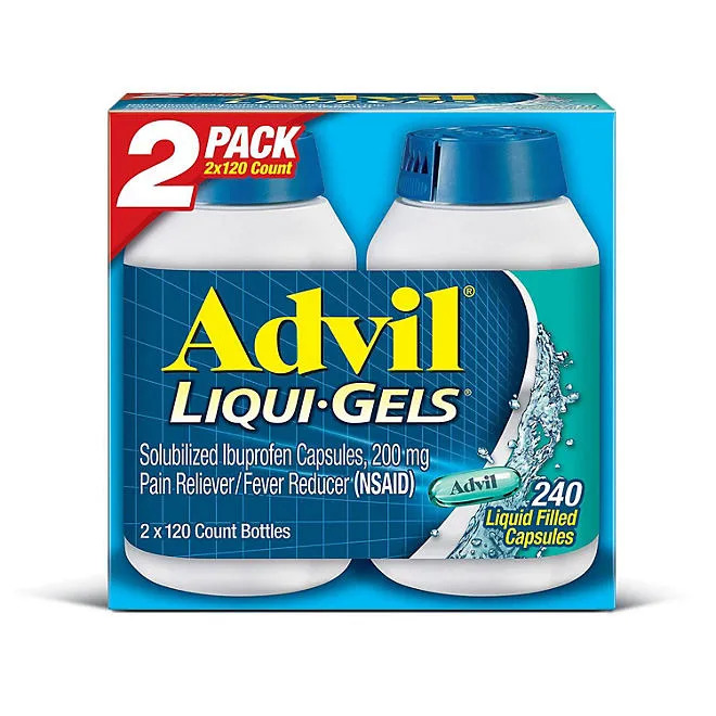 Advil Liqui-Gels Pain Reliever and Fever Reducer, Ibuprofen 200mg Capules, 240 ct.