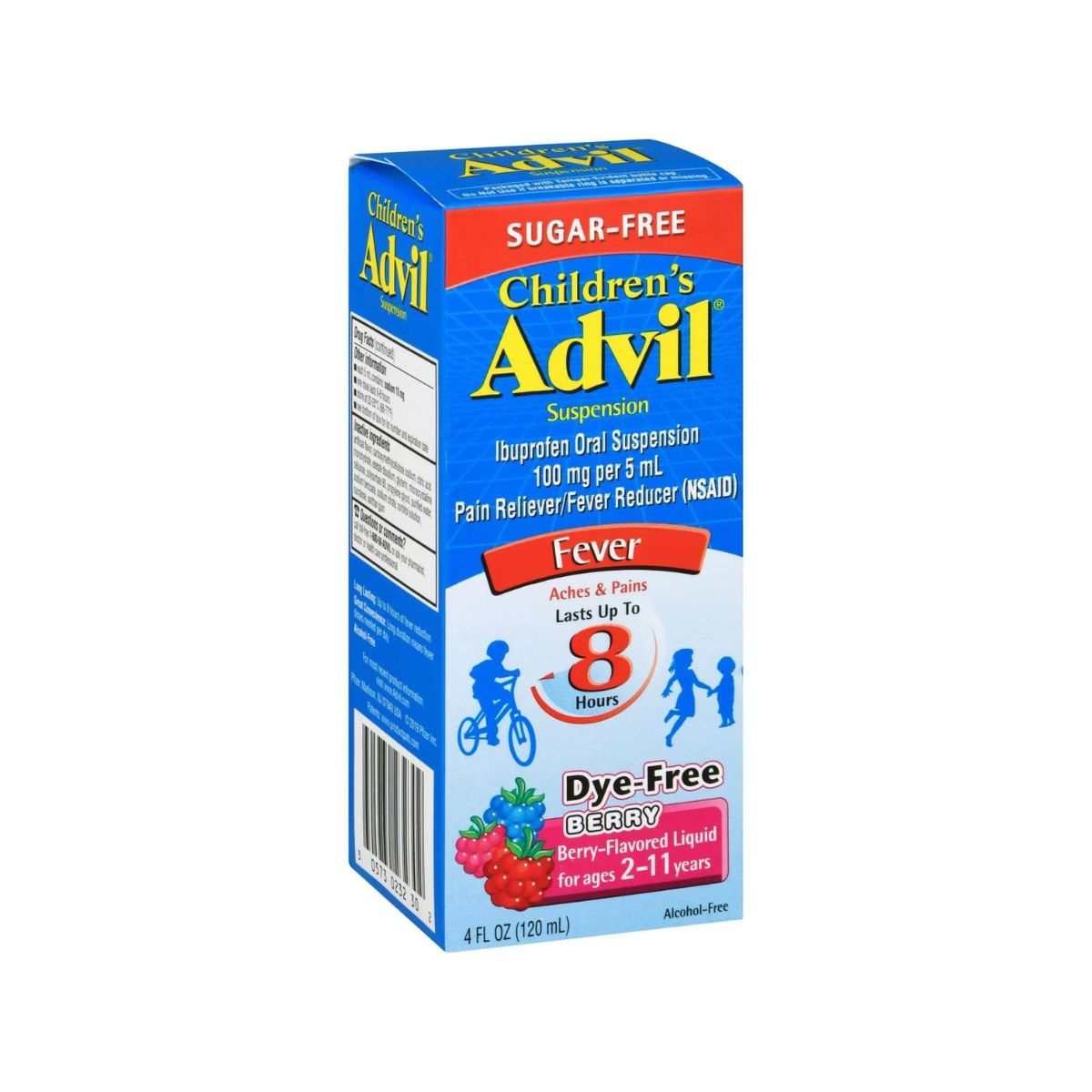 - Jarabe con sabor a bayas - Para edades de 2 a 11 años - Alivia dolores menores y dolores debido al frío, gripe, dolor de garganta, dolores de cabeza y dolores de muela - Ibuprofeno 100 mg reductor de fiebre/analgésico (NSAID) por 0.2 fl oz