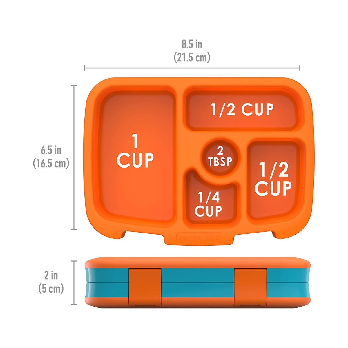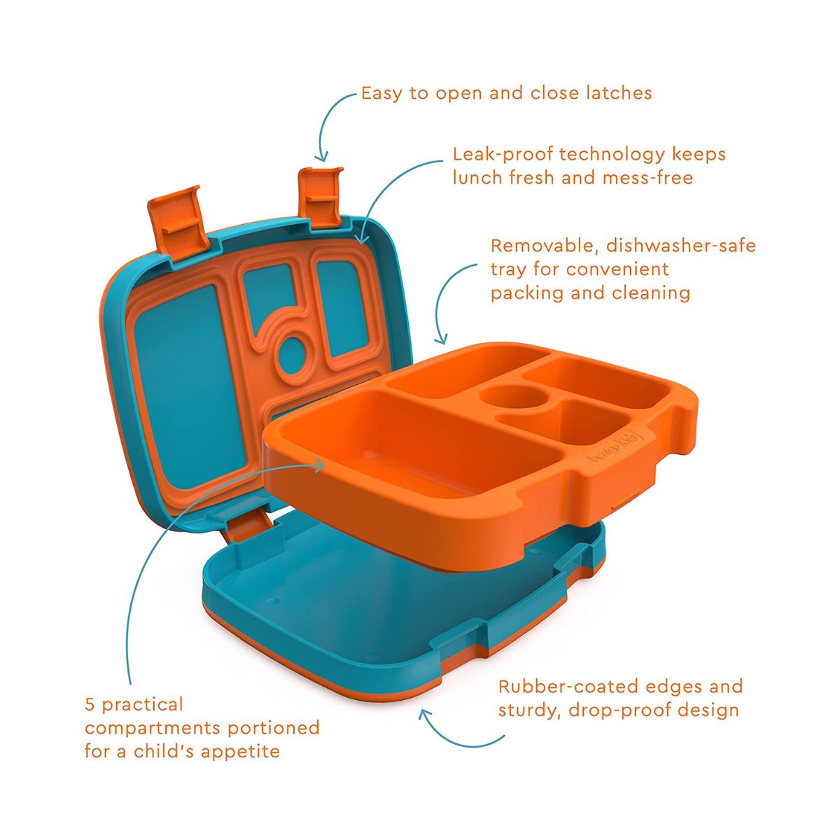 - 5 prácticos compartimentos porcionados perfectamente para el apetito de un niño para fomentar una comida saludable y equilibrada (recomendado para edades de 3 a 7 años). - Tecnología a prueba de fugas: mantiene las comidas y aperitivos frescos y sin problemas durante el transporte - Diseñado con 2 cierres aptos para niños que son fáciles de abrir y cerrar para manos pequeñas. - Diseño a prueba de caídas: fabricado con bordes duraderos recubiertos de goma que protegen la fiambrera cuando se cae.