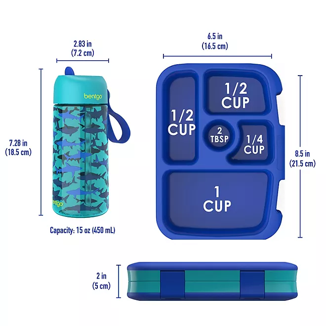 Bentgo Kids Prints Lunch Box & Water Bottle Set SHARKS