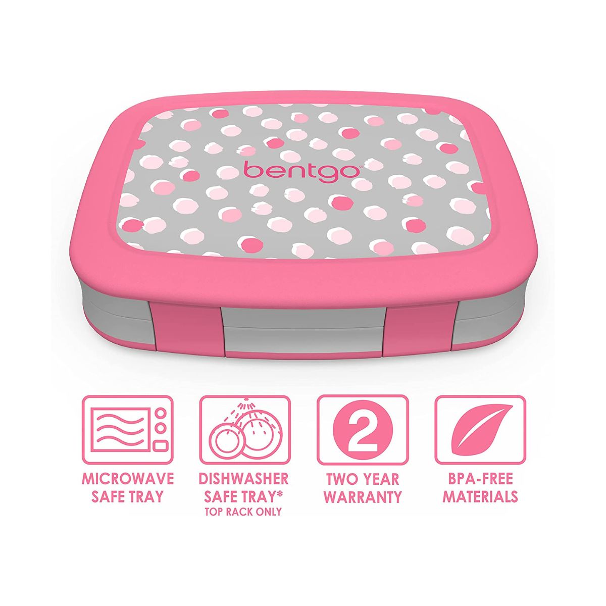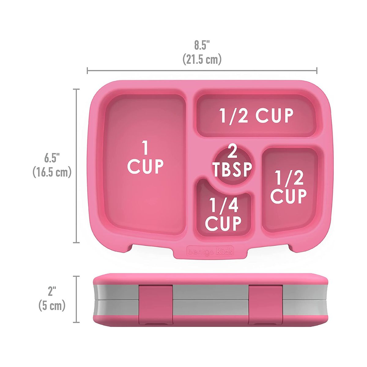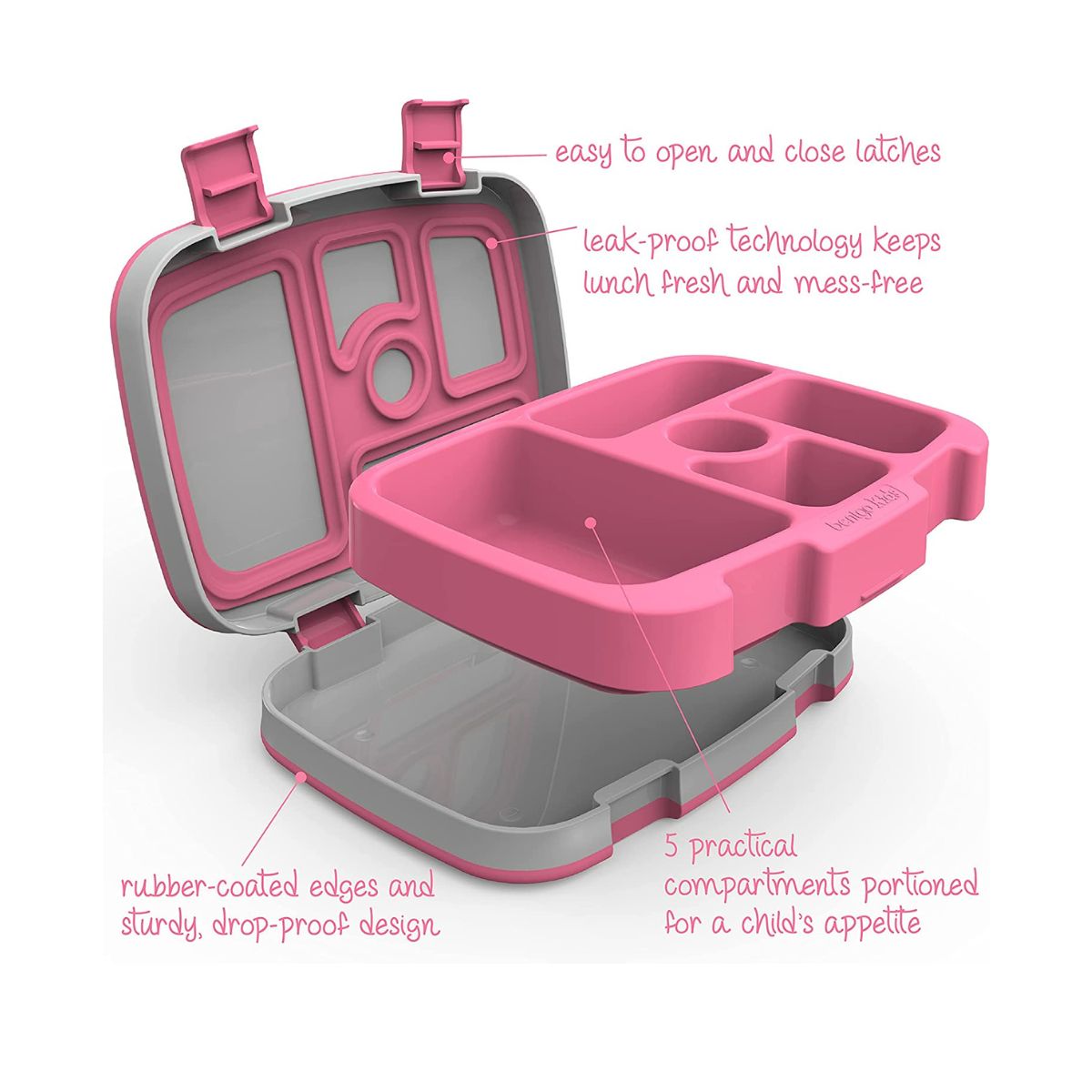 - 5 prácticos compartimentos porcionados perfectamente para el apetito de un niño para fomentar una comida saludable y equilibrada (recomendado para edades de 3 a 7 años). - Tecnología a prueba de fugas: mantiene las comidas y aperitivos frescos y sin problemas durante el transporte - Diseñado con 2 cierres aptos para niños que son fáciles de abrir y cerrar para manos pequeñas. - Diseño a prueba de caídas: fabricado con bordes duraderos recubiertos de goma que protegen la fiambrera cuando se cae.