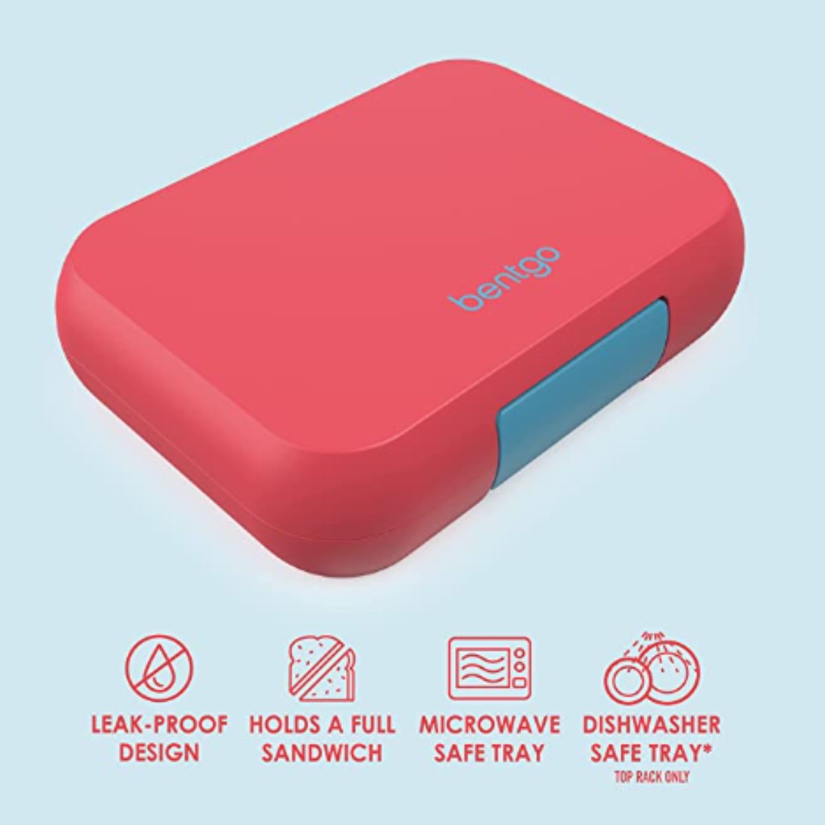 Bentgo® Pop – Lonchera estilo bento a prueba de fugas con divisor extraíble para 3-4 compartimentos, perfecta para niños de 8 años en adelante, apta para microondas y lavavajillas, sin BPA y sostenible (rojo llama, turquesa)