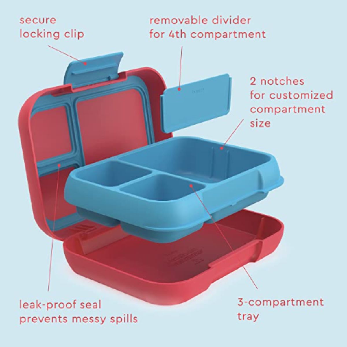 -Ideal para todos los adolescentes -Porciones más grandes: Capacidad para 5 tazas de comida -Cuidadosamente diseñada pensando en adolescentes activos -La tapa contorneada única sella perfectamente cada compartimento de la bandeja para ayudar a prevenir fugas