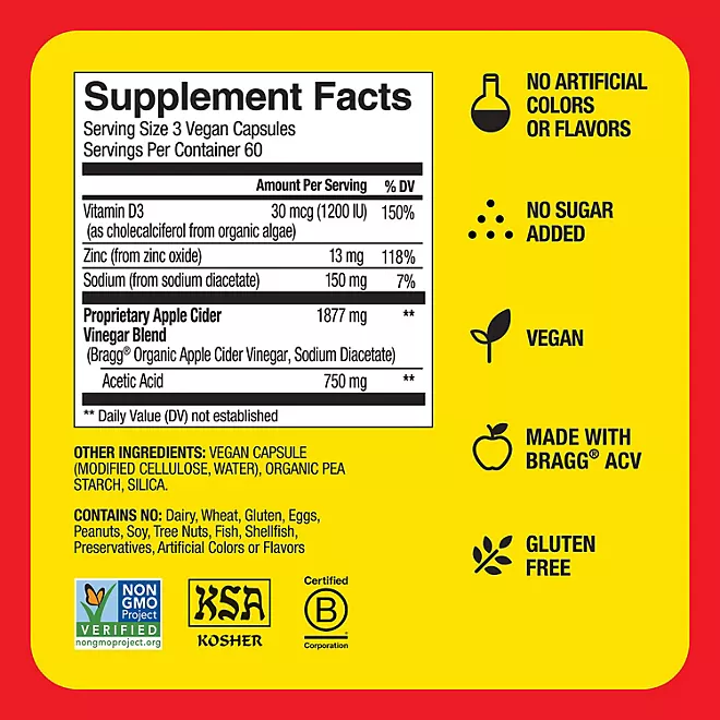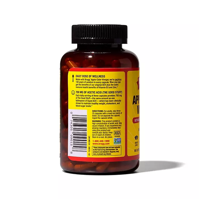 Bragg Apple Cider Vinegar Supplement Capsules, 180 ct.