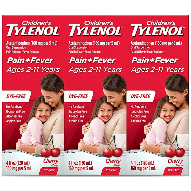Children’s Tylenol Oral Suspension, Cherry, 4 oz., 3 pk.