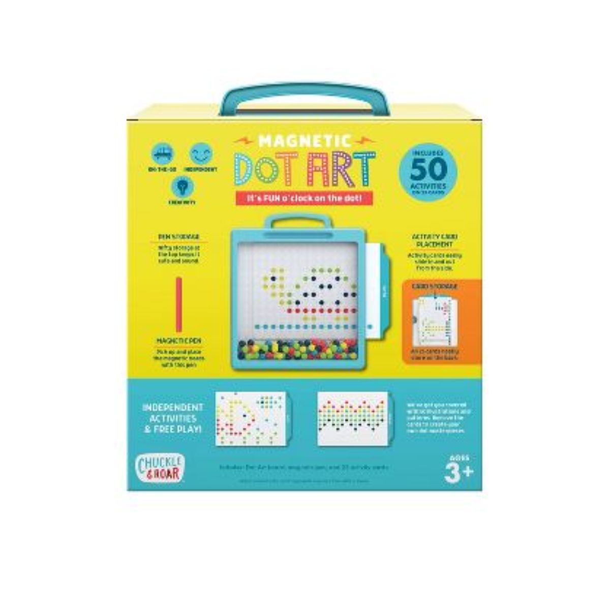 - A partir de 3 años en adelante - Incluye 50 actividades en 25 tarjetas de doble cara - Vienen en 5 colores diferentes creando infinitas posibilidades para la imaginación y el arte. - Fomenta la independencia, la autoexpresión y las habilidades creativas para resolver problemas. - Perfecto para viajar: son independientes y el bolígrafo magnético y las tarjetas de actividades se pueden guardar en la parte posterior del diseñador.