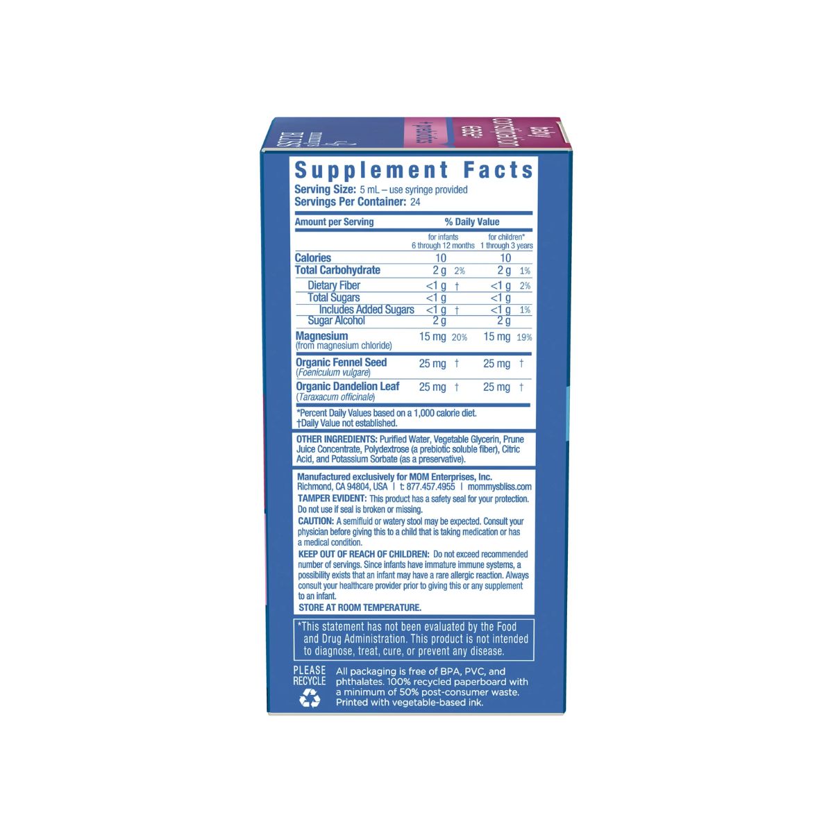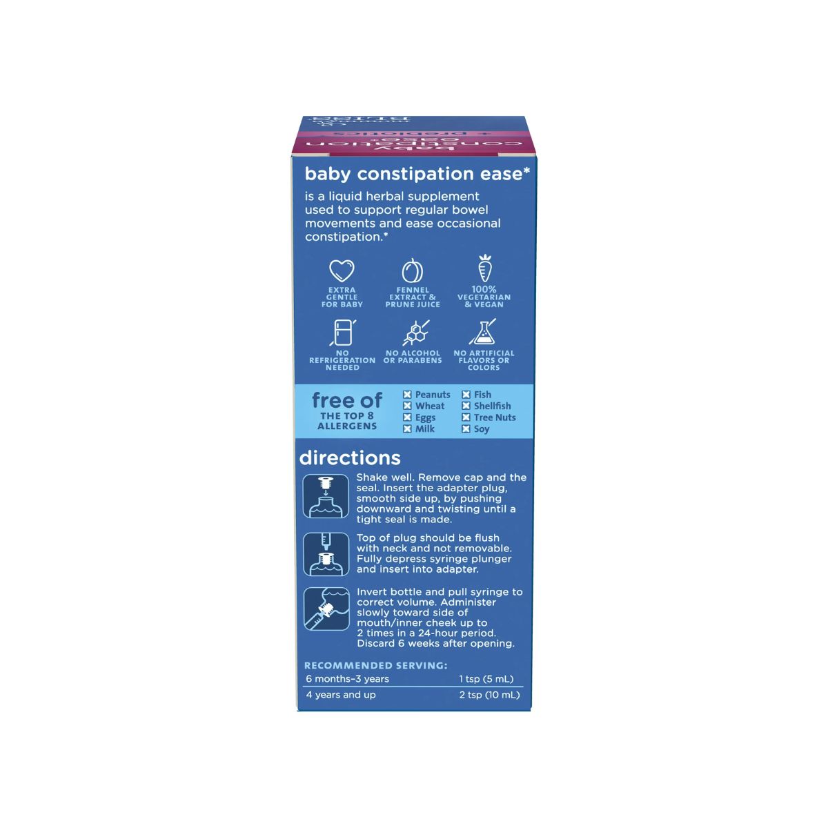 - Prebióticos - Laxantes suaves, sin fuertes - Libre de colorantes, alcohol y parabenos. - Sin sabores ni colores artificiales. - Sin lácteos, gluten o soja. - Extra suave para bebé - Hecho con jugo de ciruela para el estreñimiento ocasional y extracto de hinojo para el malestar estomacal y la hinchazón - No requiere refrigeración.