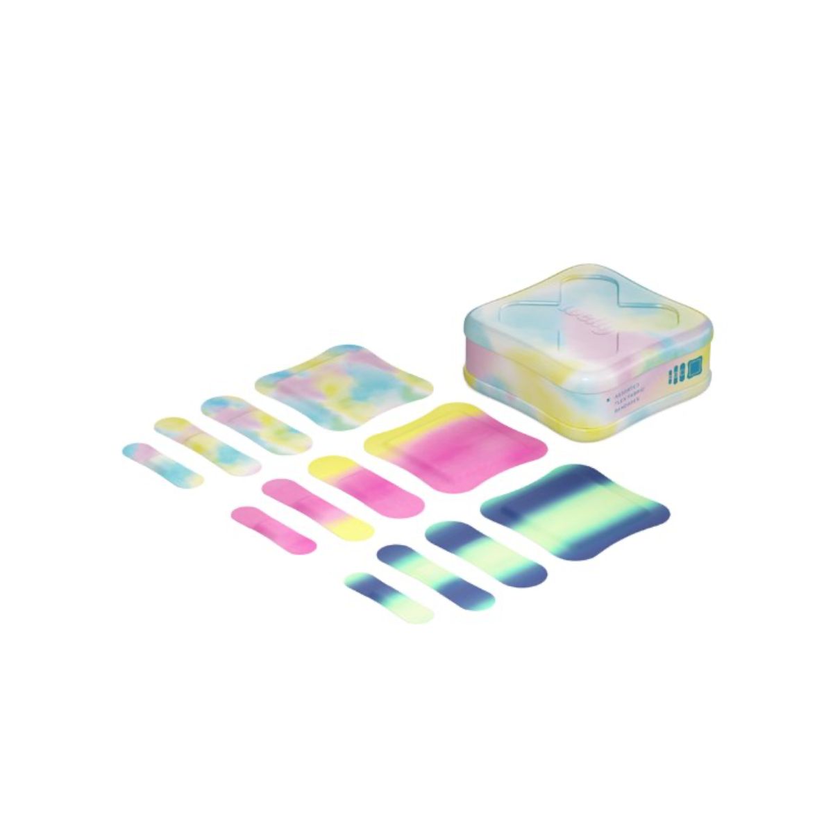 - Los vendajes de tela flexible de primera calidad se mueven con cada uno de tus movimientos. - Los colores brillantes te ayudan a lucir tus golpes y cortes con orgullo. - El empaque de lata duradero y apilable ayuda a mantener su botiquín organizado - El vendaje se sella en los cuatro lados para evitar la entrada de gérmenes y suciedad - Incluye 48 vendajes de tela flexible en tres llamativos patrones y colores de teñido anudado