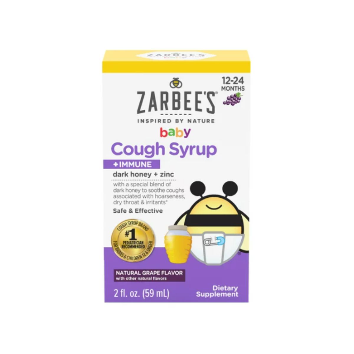 Zarbee's Baby Cough Syrup + Immune with Honey & Zinc, Natural Grape Flavor, 2 Fl Oz